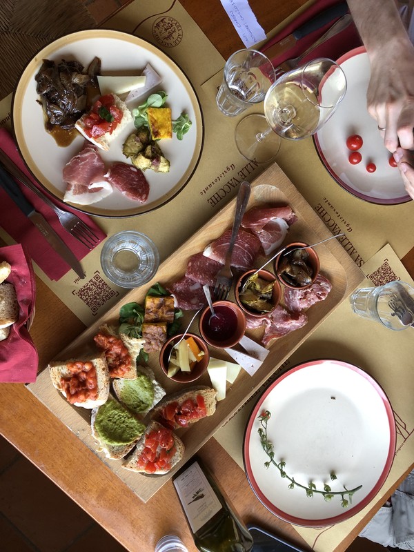 - Дегустация 4–5 вин с типичными тосканскими закусками (сыр, прошутто, брускетта) в семейной винодельне или в средневековом замке-винодельне — €20–30 за чел.