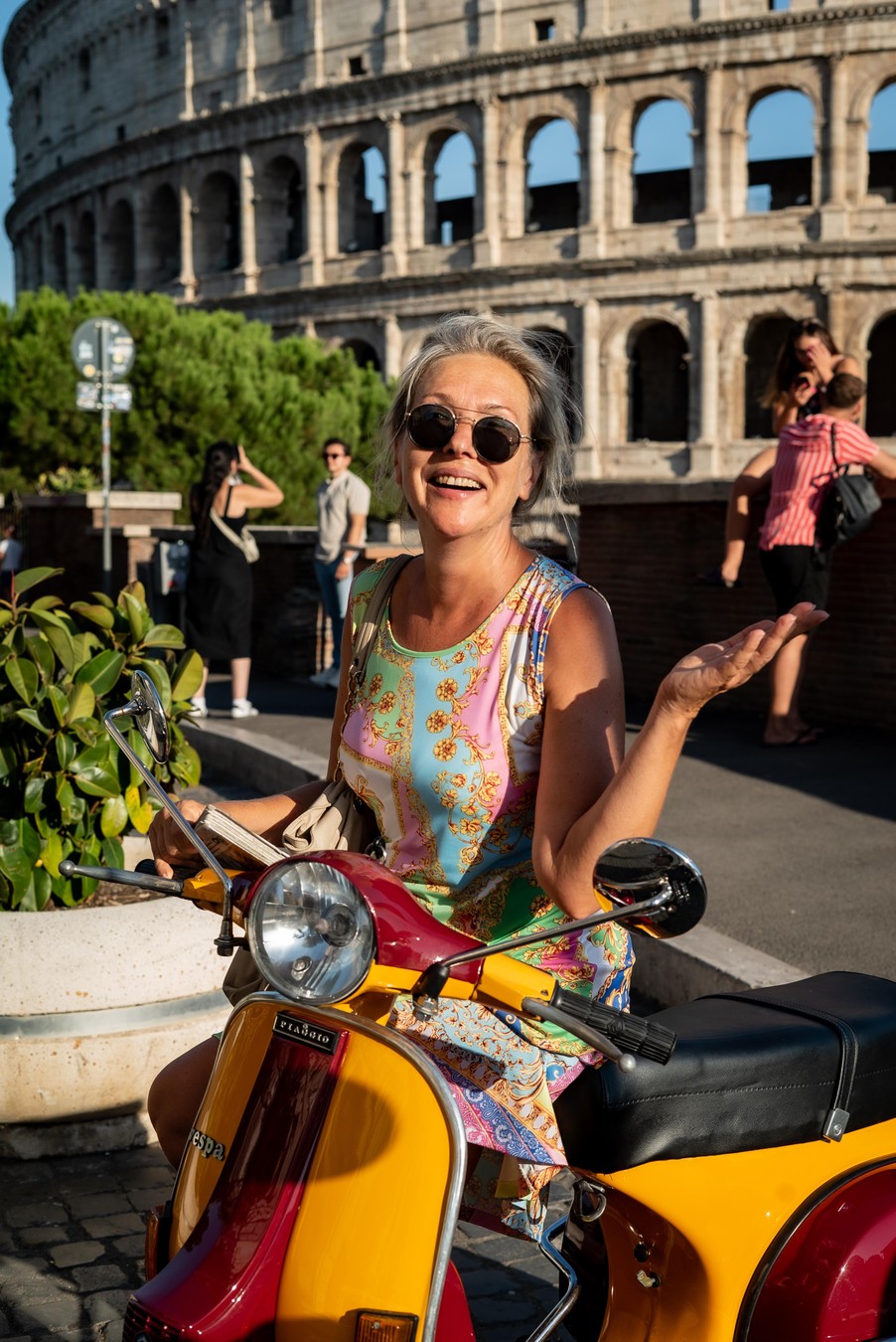 " На легендарной Vespa вы откроете Рим с новой стороны. Проедете по улицам и площадям, где история соседствует с повседневностью. Увидите Колизей и Пантеон, заглянете на укромные смотровые площадки, где римляне встречают закаты. Вас будет сопровождать аромат эспрессо и оригинального тирамису — дух сладкой жизни и свободы. "