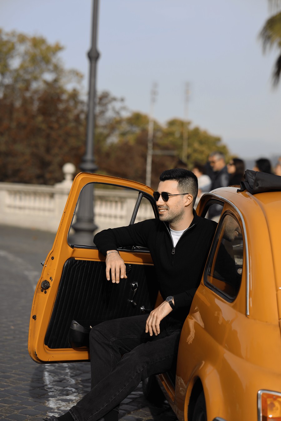 " Винтажный Fiat 500 идеально вписывается в римские улицы и задаёт тон всей поездке. Мы прокатимся по местам, куда редко заходят пешие туристы, и снимем живые кадры — с видом на холмы, фонтаны и старинные кварталы. Это путешествие — про настроение, атмосферу и настоящую римскую dolce vita. "