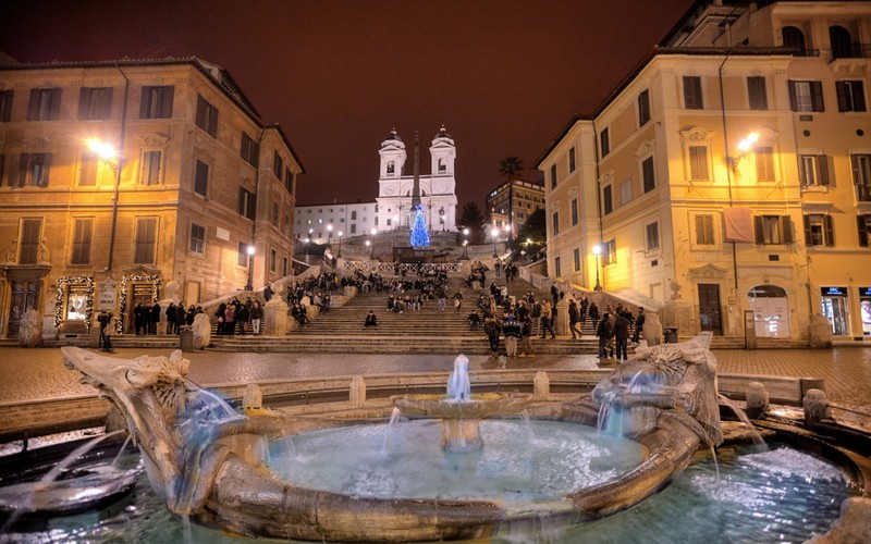 - По сияющим праздничными огнями улицам направитесь к Испанской лестнице
