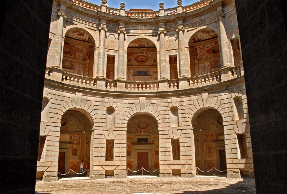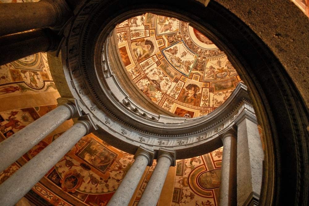 В отличие от виллы Д’Эсте, откуда австрийцы вывезли всё ценное, резиденция Фарнезе была в частных руках, что уберегло её богатства. И это настоящее сокровище Ренессанса! Уникальные фрески, созданные лучшими художниками 16 века, с пола до потолка украшают и парадную винтовую лестницу, и залы. Мы полюбуемся внутренним убранством монументальной пятиугольной крепости, а затем прогуляемся по красивому саду.