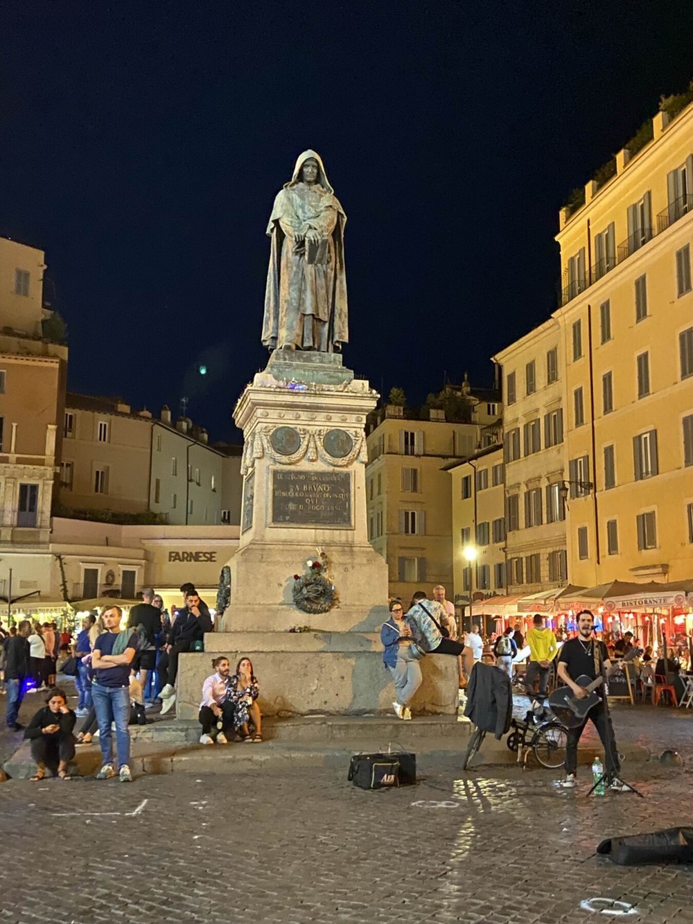 Площадь Кампо-деи-Фьори. У статуи Джордано Бруно вы выясните, кем он был и за что его сожгли. А ещё услышите секретную историю о девушке, ставшей серийной убийцей.