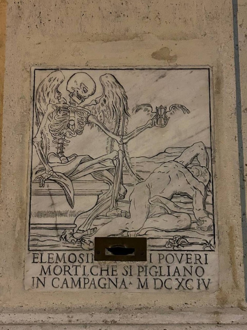 Церковь Молитвы и Смерти, чьи помещения отделаны костями. Я поделюсь историей о братстве, с которым связана церковь. И расшифрую символику ангела смерти на стене.