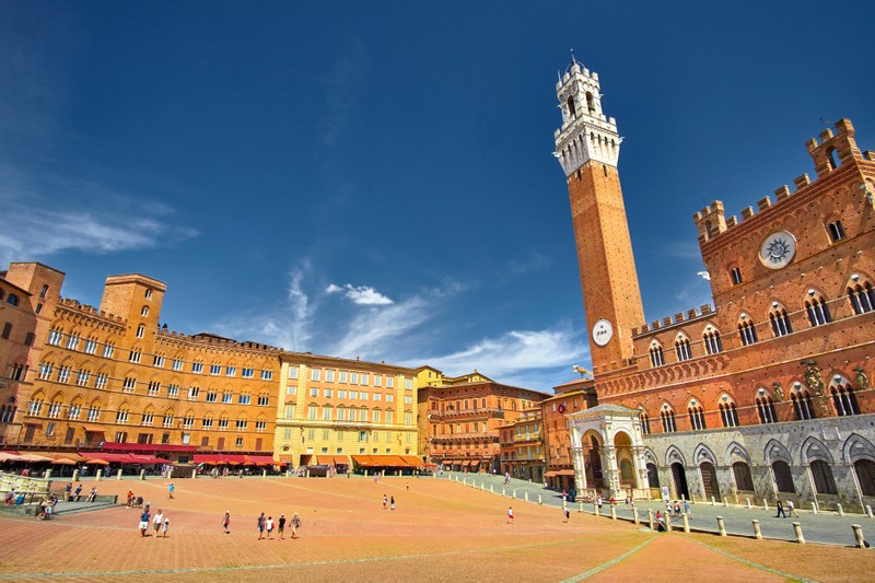 Вы погуляете по старинным узким улочкам и типичным сиенским районам «контрадам». Посетите центральную площадь в форме изогнутой ракушки Пьяцца-дель-Кампо и узнаете, какие интересные городские события на ней проходят. Полюбуетесь средневековым палаццо Публико и 102-метровой колокольней Торре-дель-Манджа. А также увидите древнейший банк Италии и базилику Сан-Доменико, где хранятся мощи Святой Екатерины.