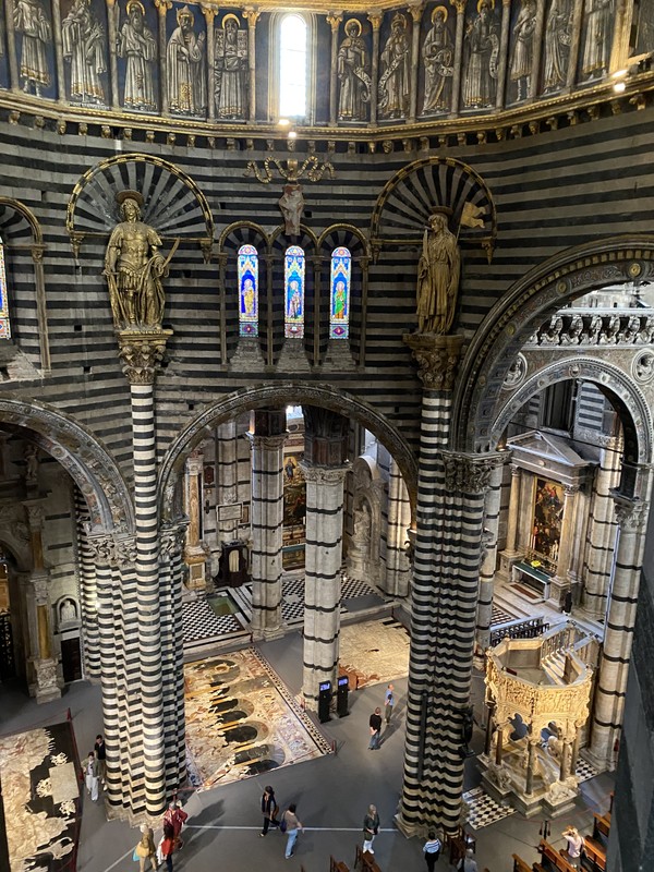 - Собор, Библиотека Пикколомини. Музей произведений для Кафедрального Собора и Фаччатоне (новый фасад-панорамная точка города), крипта и Баптистерий — €16 (+ €2)