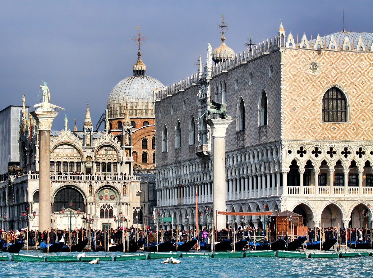С первых минут на одной из самых известных площадей мира вы погрузитесь в ее бурлящую жизнь и старые сюжеты. Узнаете о крылатом льве на флаге Венеции, о том, почему ни один венецианец не пройдет между двумя колоннами у «входа» на площадь (даже если ему заплатить) и почему на площадях Венеции не сажали деревья. Мы не оставим без внимания все знаковые здания Сан-Марко: я расскажу главное о музее Коррера, Прокурациях — дворце, построенном для Наполеона, часовой башне, старейшем кафе Италии Флориан и, конечно, о дворце дожей.