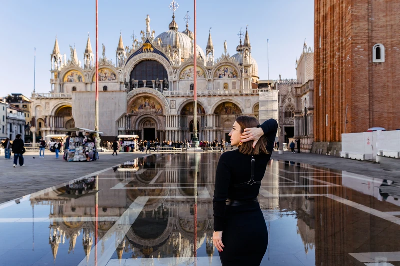 - Площадь Сан-Марко — сердце Венеции с величественным собором и колокольней. Это идеальное место для классических и романтичных снимков