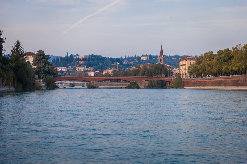 - От плотины 19 века мы проплывём мимо больницы Борго Тренто, базилики Сан-Дзено и под мостом Понте Скалигеров