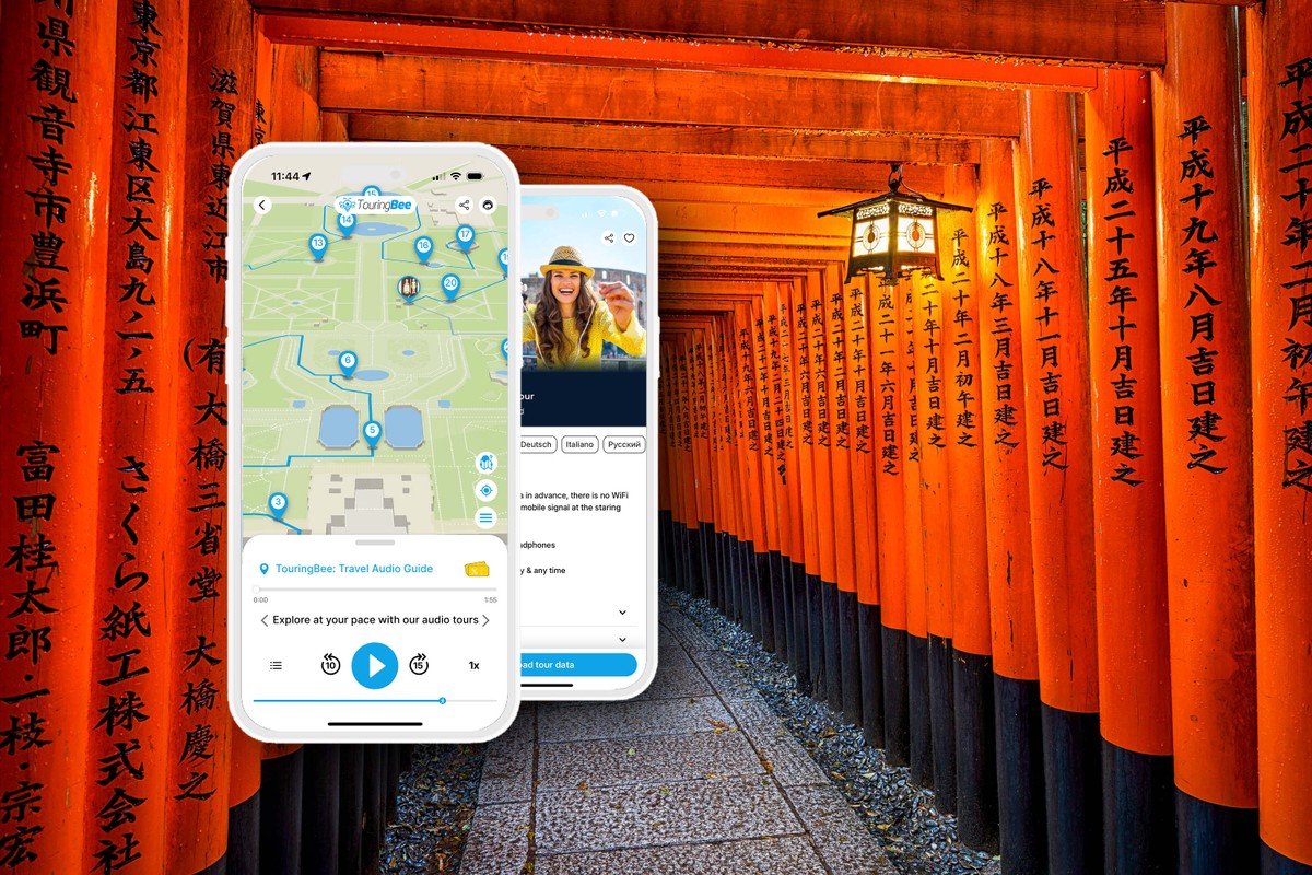 " Пройдите по священной горе Фусими-Инари в своём ритме — с аудиогидом в смартфоне. Вы окажетесь среди тысяч алых ворот, уходящих вглубь леса, услышите легенды о лисах и богах, узнаете смысл этих мест и почувствуете атмосферу японской духовности — спокойную, завораживающую и почти нереальную. "