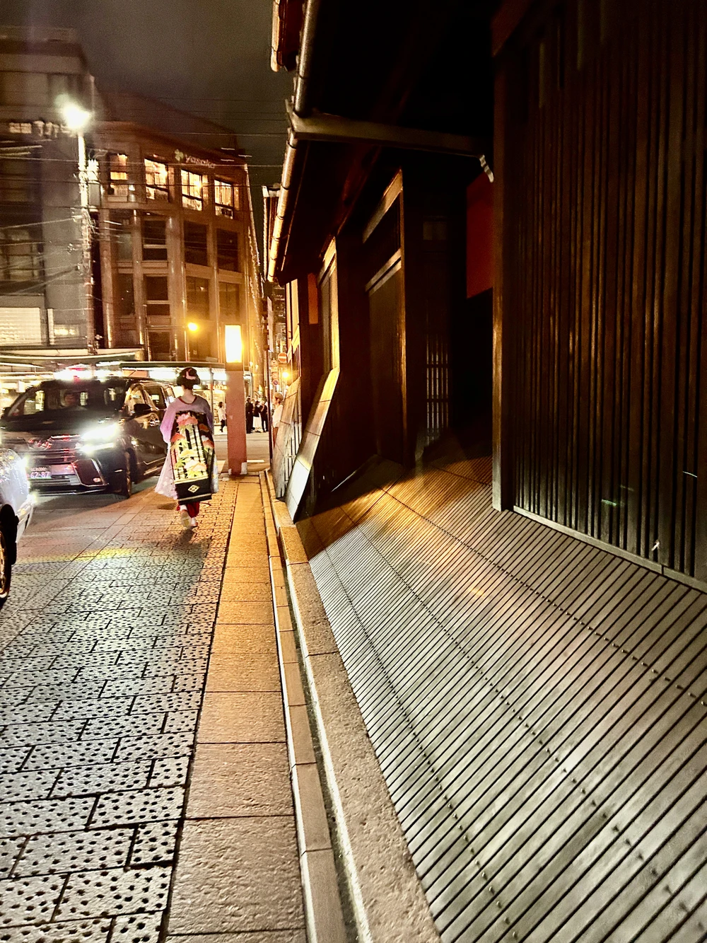 " Приглашаю вас пройти по историческим улицам района Гион, где сохранилась атмосфера старого Киото. Мы зайдём в музей кимоно и увидим традиционный танец в исполнении настоящей гэйко или майко. Я расскажу о скрытой символике их костюмов, различиях между повседневными и праздничными нарядами и о некоторых секретах образа гейши. "