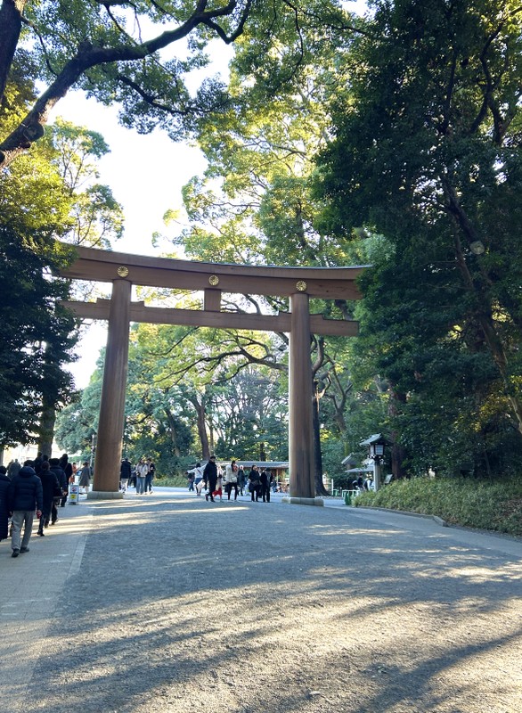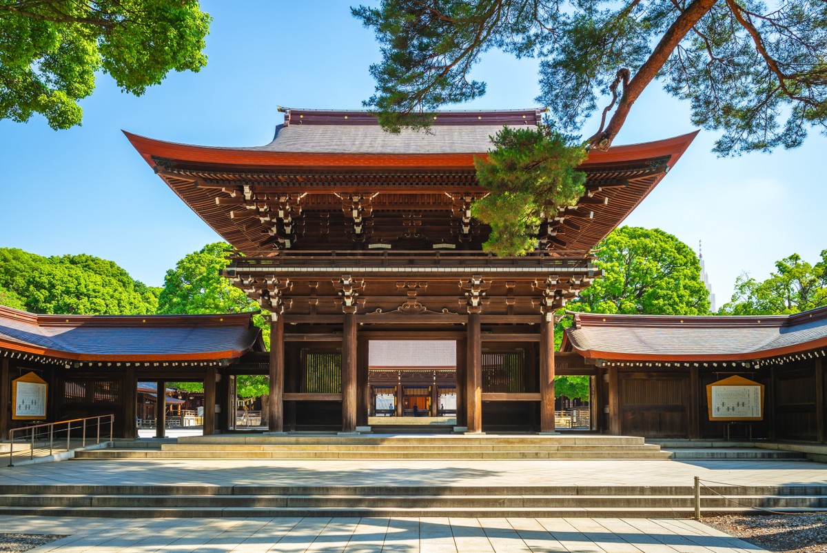 Синтоистский храм Мэйдзи-дзингу в пышном лесу в центре города.