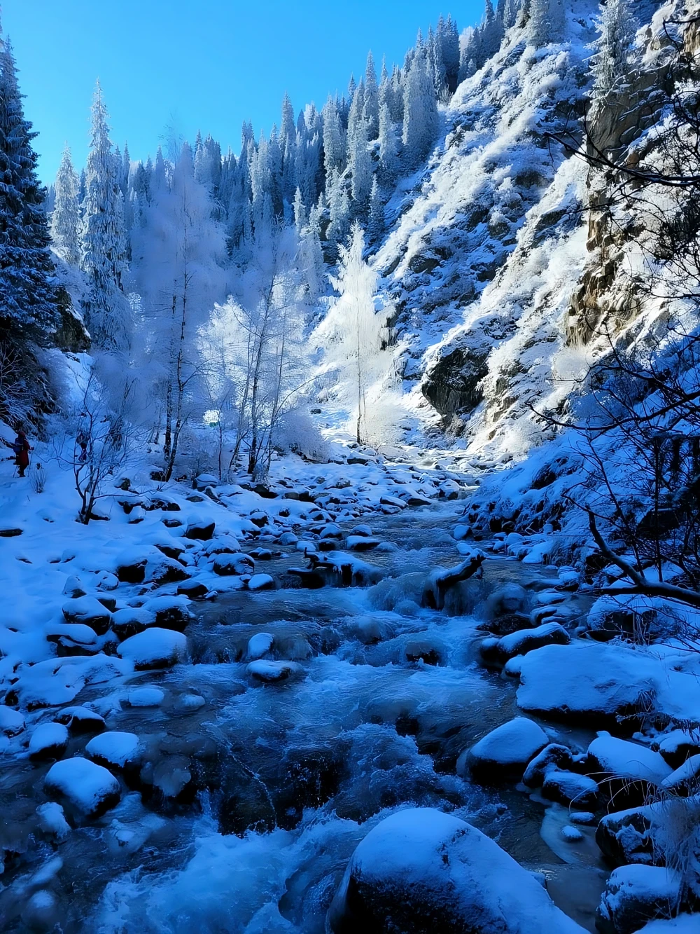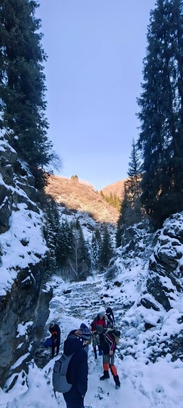 Наш маршрут пройдёт по одному из самых красивых ущелий — Алмасаран. Там очень ярко выражена смена географических зон: от смешанного леса к хвойному, далее к зоне альпийских лугов и, наконец, к сияющим от снега пикам. Путь к поляне полон приключений: вас ждут переходы через реки и поваленные деревья, крутые подъёмы и спуски. А ещё — невероятная природа. Вы полюбуетесь видами на еловые, сосновые, берёзовые и в сезон малиновые рощи. Когда доберёмся до поляны, устроим привал: отдохнём, перекусим, насладимся захватывающими пейзажами.
