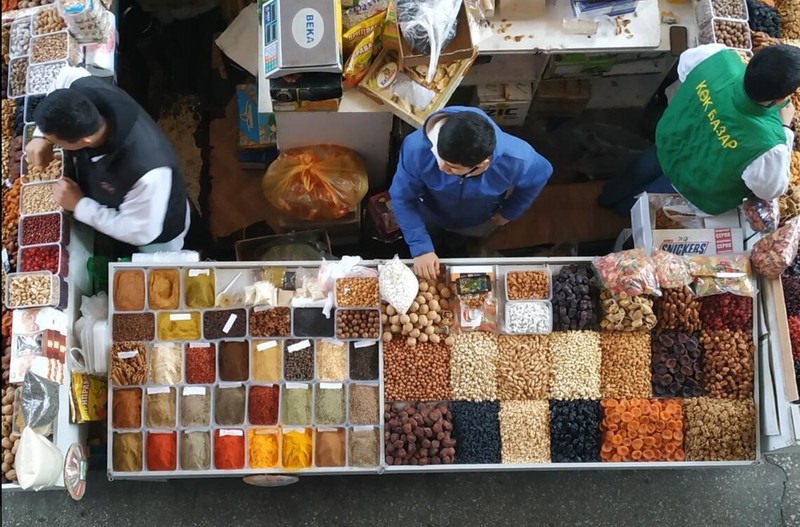 Зелёный базар. Гастрономический хаб №1 со времён Великого Шёлкового пути. Здесь баурсаки, курт, казы, карта, шужук, жал, жая, сур-ет, карта и кабырга перестанут быть для вас непереводимой игрой слов. Помимо артефактов аутентичной казахской кухни, на базаре найдутся и несъедобные сувениры — от одежды до антиквариата.