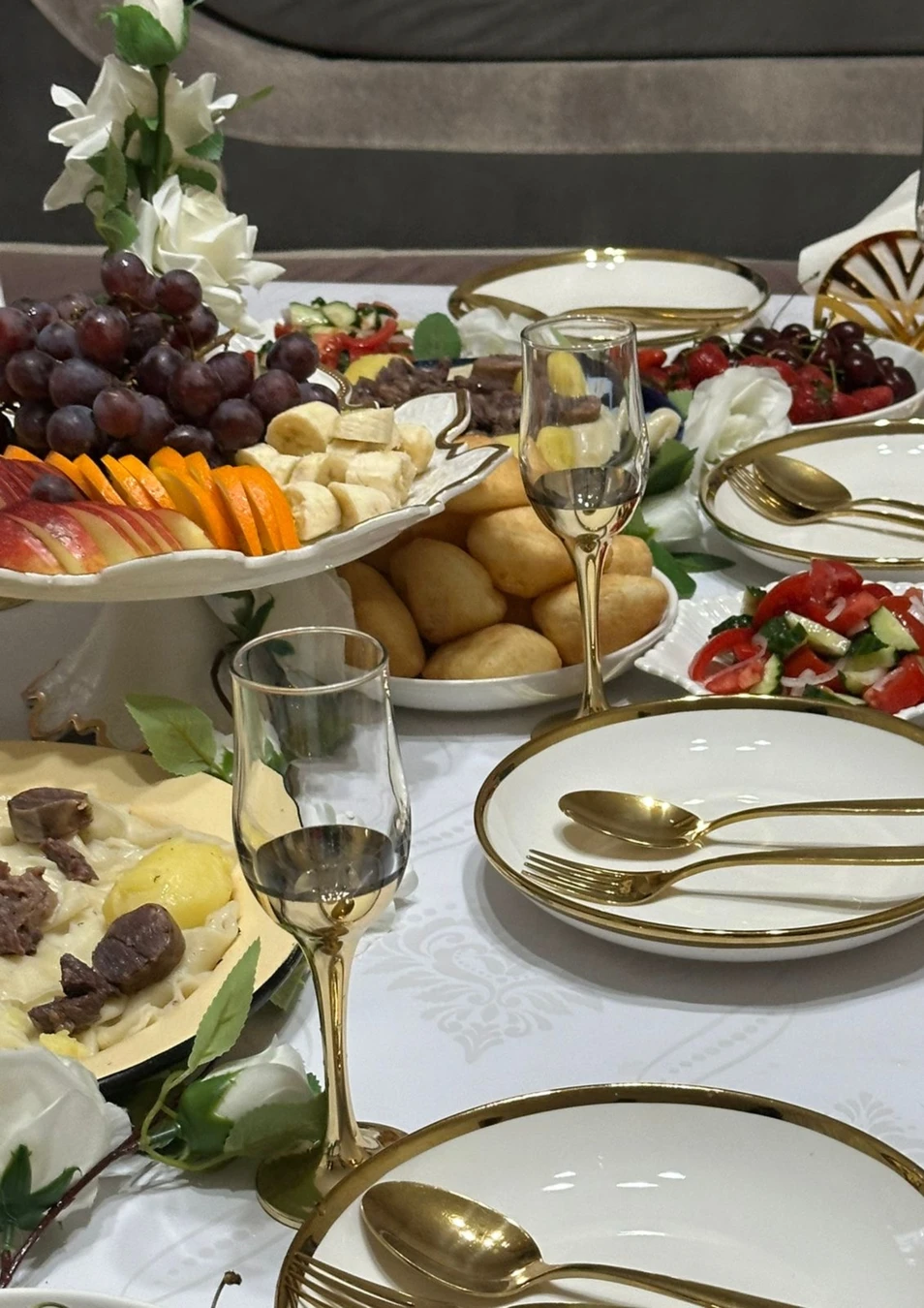 - Десерт: ассорти казахских сладостей, фруктовая нарезка