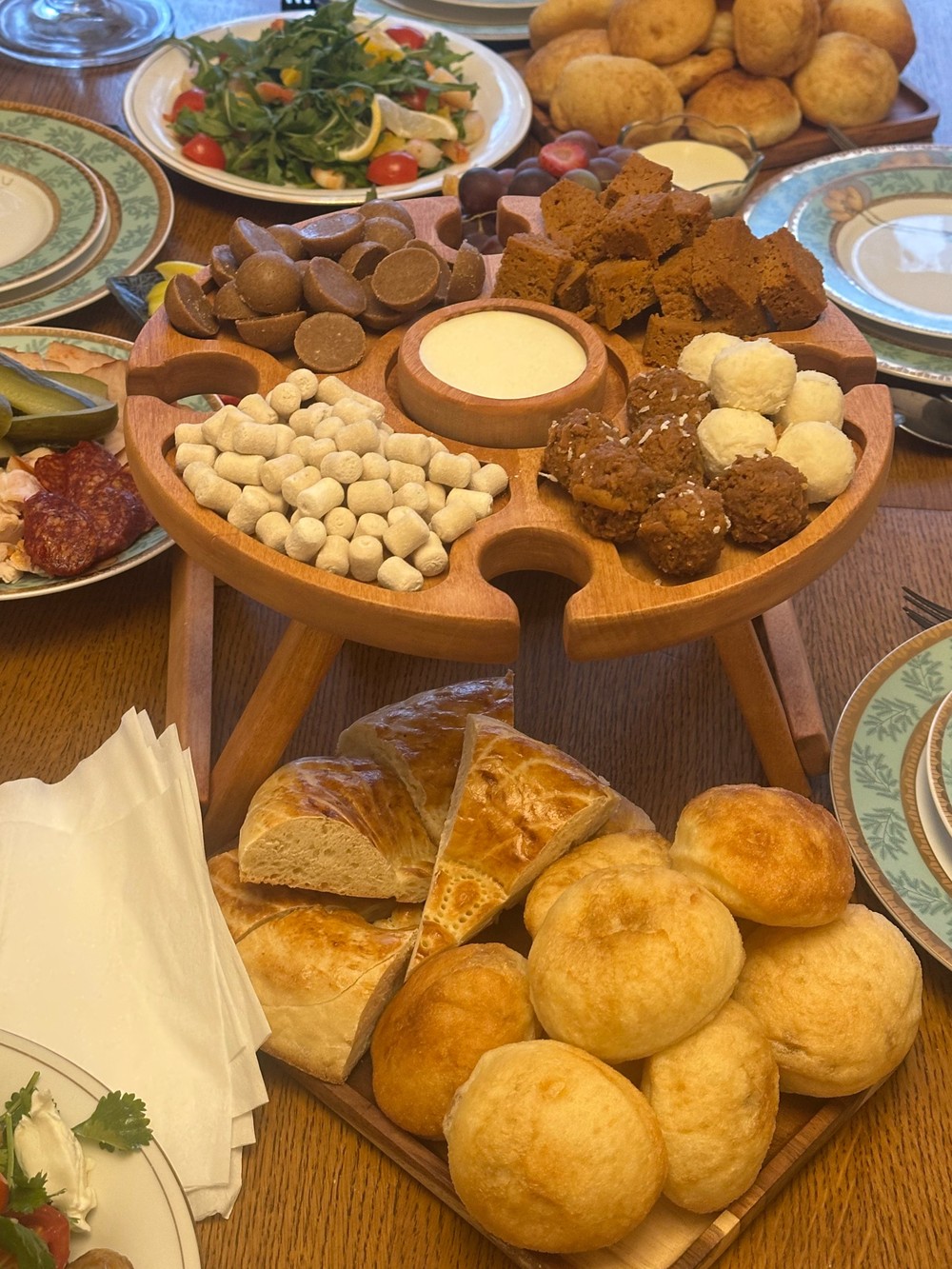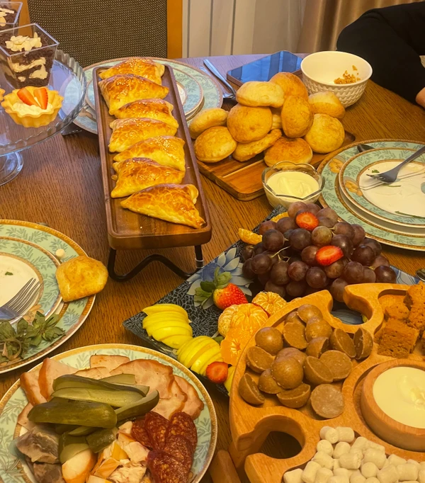 - Выпечка и закуски: бауырсаки, натуральная сметана, самса, хлебная корзина