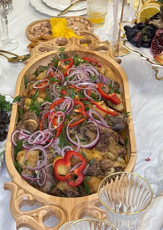 - Основное блюдо: бешбармак, бульон с натуральным айраном