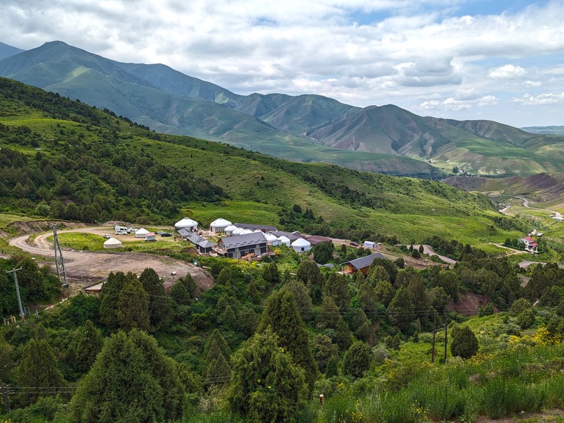 - Первая остановка на маршруте — горный отель SkyGlamping. Заглянем на смотровую площадку на высоте 1900 метров, с которой в ясную погоду открывается завораживающая панорама Бишкека и окрестностей.