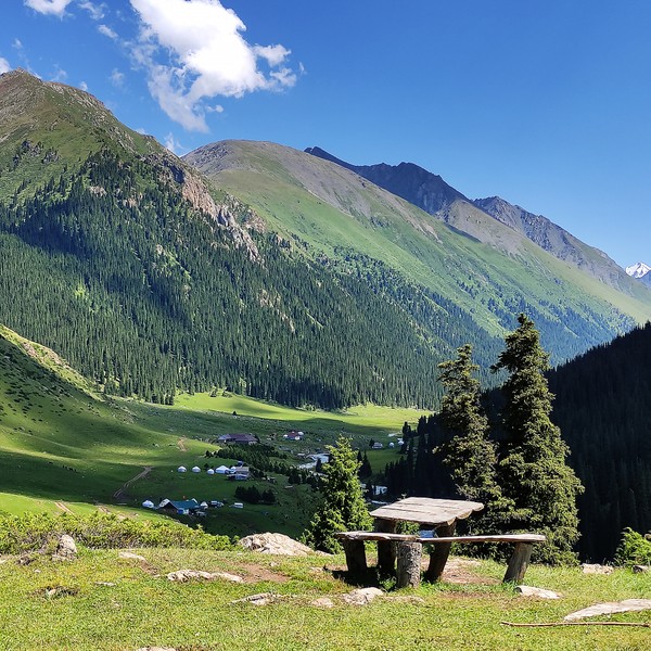 " Приглашаю вас путешествовать по горной дороге в изумительной красоты ущелье Алтын-Арашан. Чтобы искупаться в целебных термальных источниках, насладиться видами заснеженных вершин и тянь-шаньской ели, подышать свежим горным воздухом. В этом путешествии будет не только природная часть: заедем в город Каракол, чтобы увидеть памятники архитектуры. "
