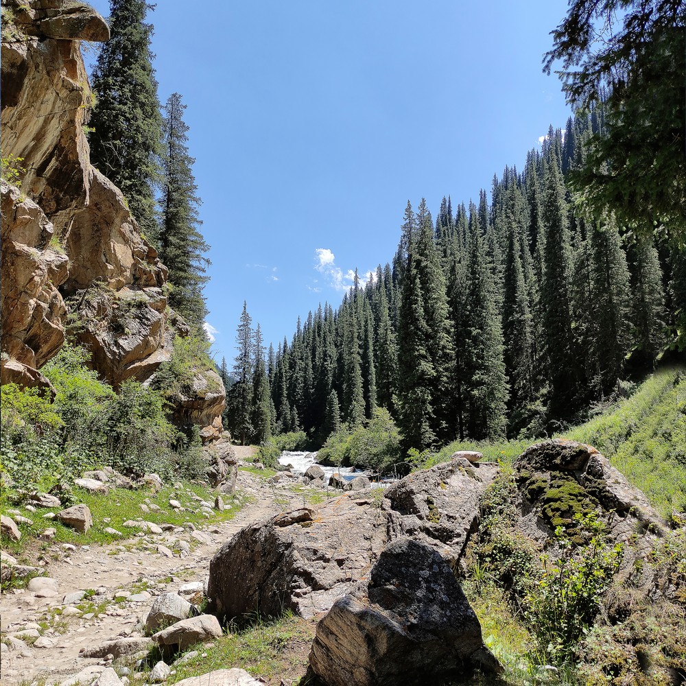 Из Каракола до ущелья доедем за 2–3 часа. Сюда можно добраться только на машинах повышенной проходимости: дорога заканчивается сразу за посёлком Теплоключенка и дальше вас ждёт настоящий джипинг. По пути остановимся в музее.