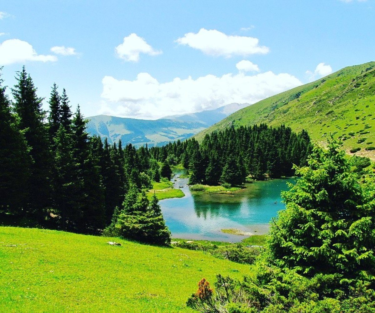 Мы проедем по ущельям на внедорожнике повышенной проходимости, останавливаясь в самых живописных местах. Вы увидите урочище Кырчын, где впервые проводились Всемирные игры кочевников. А также посетим известное и очень живописное место — «Святое озеро». Под толщей его бирюзово-изумрудной воды уже более 100 лет стоят затопленные тянь-шаньские ели. Если пожелаете, в программу можно добавить прогулку на лошадях и обед в национальной юрте.
