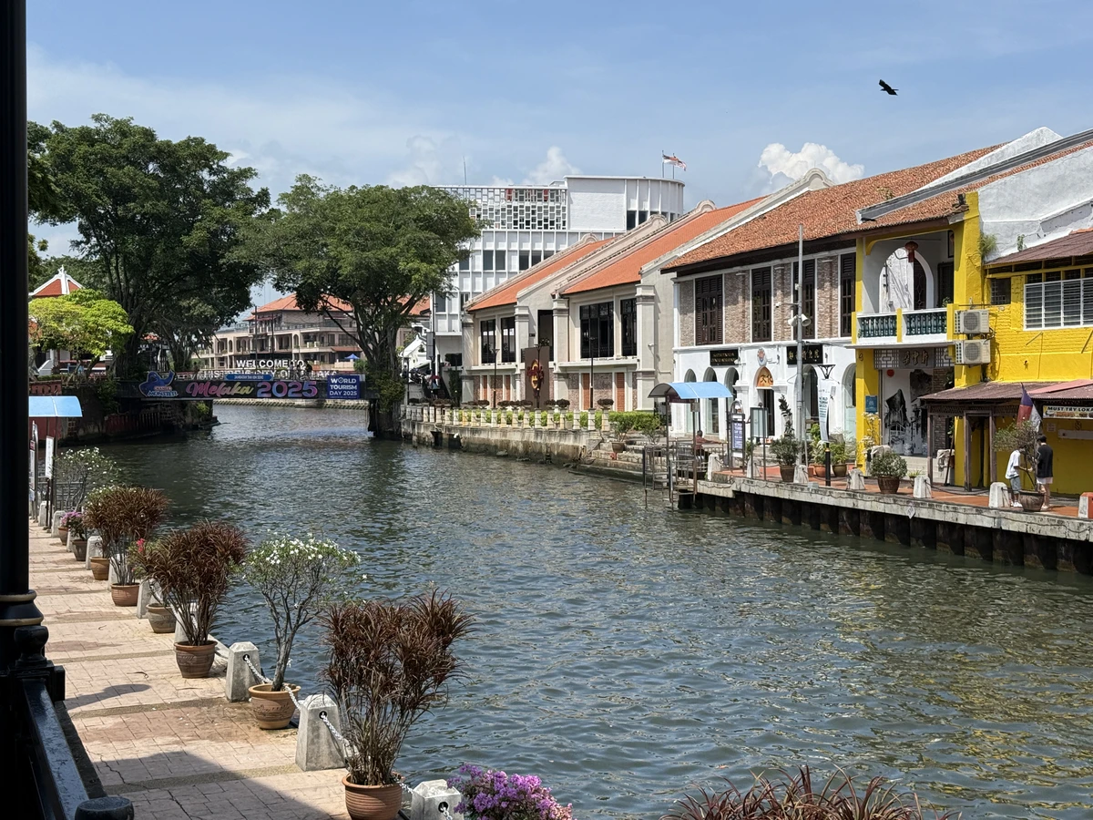 Если захотите, можно прокатиться на речном трамвайчике по реке Малакка. С воды город выглядит по-другому: набережные украшены муралами, а старые дома отражаются в спокойной воде реки.