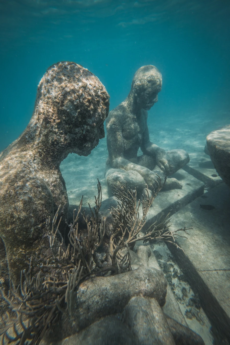 Создавая этот музей, его автор — Джейсон Тейлор — хотел оживить песчаное дно, отвлечь внимание от природного рифа и создать рукотворный, на котором смогут расти кораллы. Ваше погружение будут сопровождать рыбы, омары и прочие морские жители, уже облюбовавшие скульптуры этой экспозиции под названием «Тихая эволюция». Словно древняя цивилизация, опустившаяся на дно, она рассказывает историю народов, начиная от майя и заканчивая нашим временем.