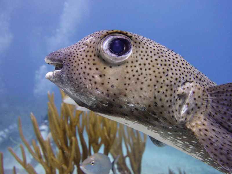 - сначала коралловый риф, где можно встретить барракуд, лобстеров и стайки тропических рыб
