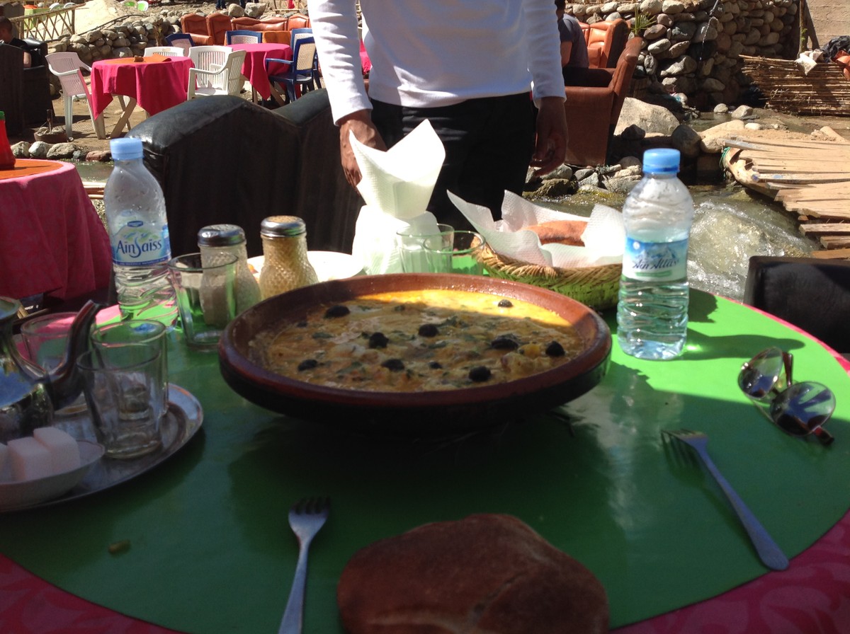 12:00 — обед у реки. Вас будет ждать тажин с мясом и овощами, приготовленный в традиционной посуде.