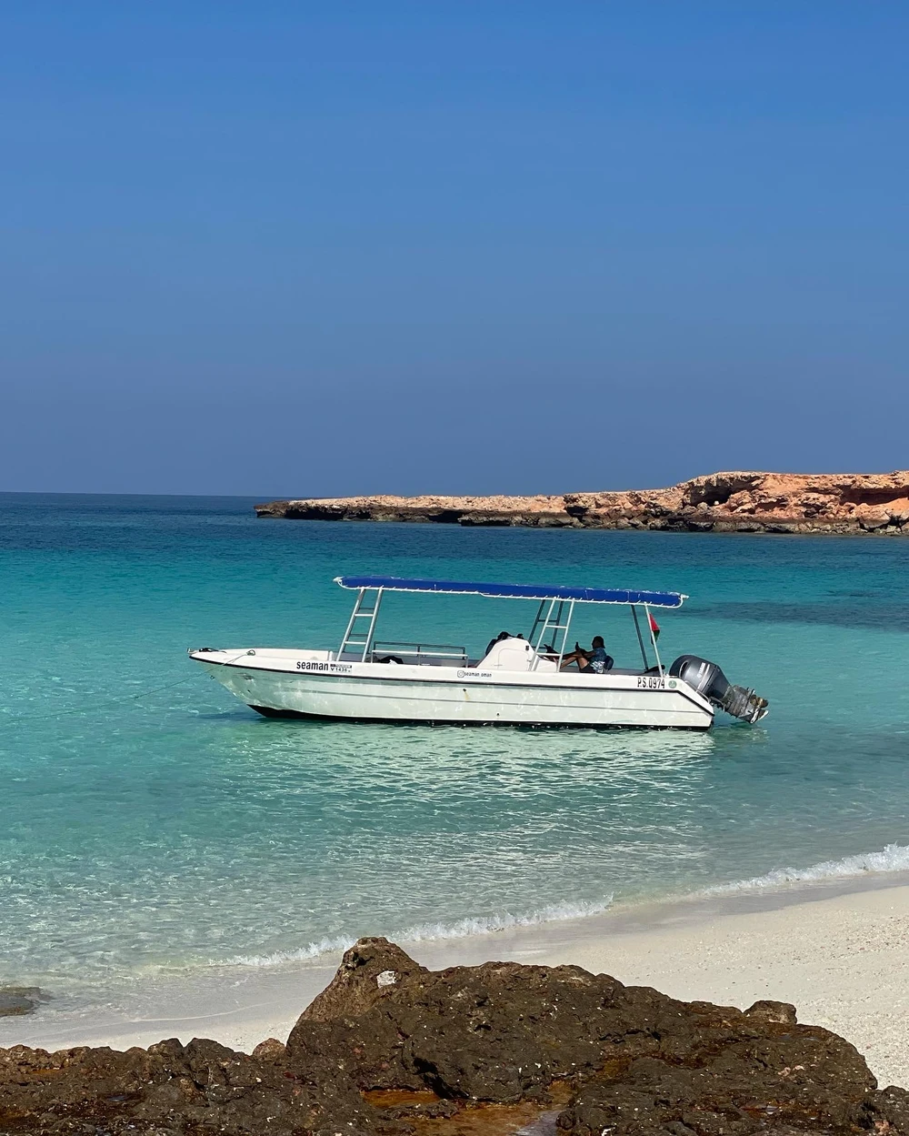 " Отправляемся к островам Дайманиат — заповеднику с кристально чистой водой и коралловыми рифами, который называют Оманскими Мальдивами. Здесь вы сможете заняться снорклингом, рассмотреть тропических рыб и морских черепах, отдохнуть на пляже и сделать яркие фотографии среди бирюзовых лагун. "