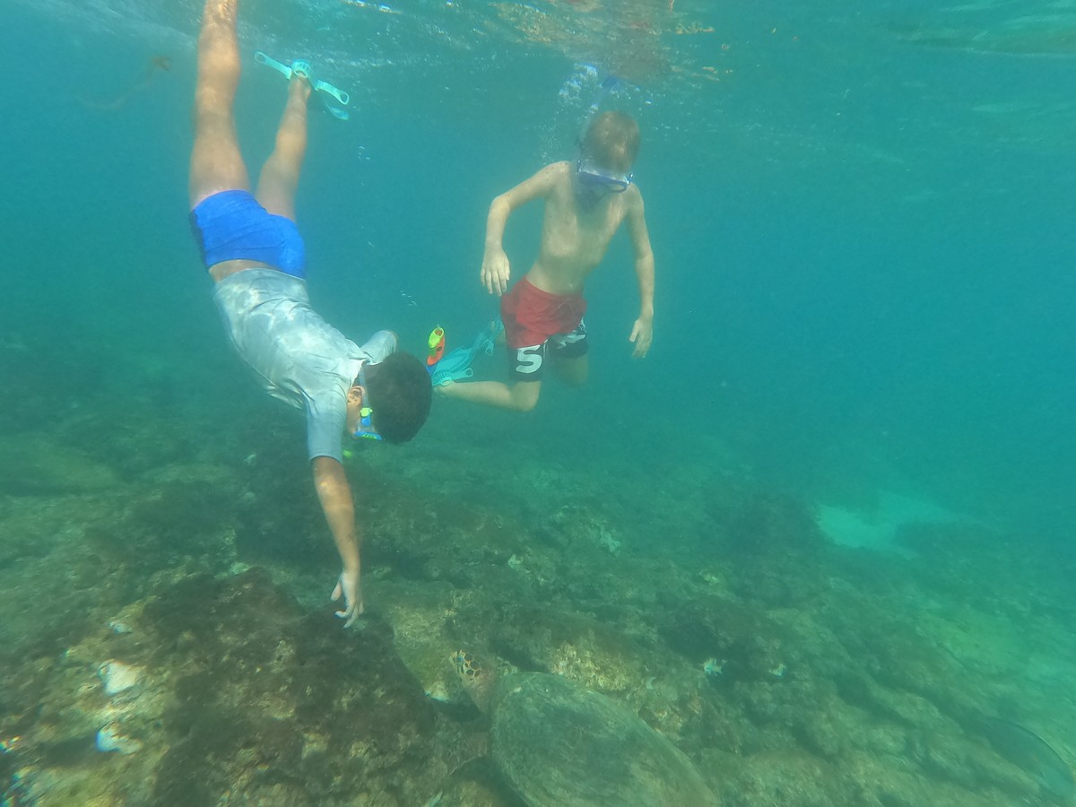 - Путешествуем на скоростном катере. Гостям предоставляются маски, трубки и спасательные жилеты. На борту — прохладительные напитки и лёгкие закуски. Также есть биотуалет, душ с пресной водой, таблетки от укачивания