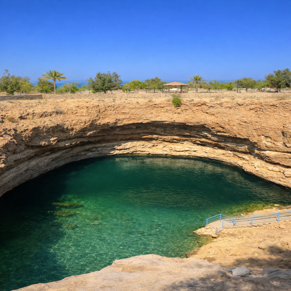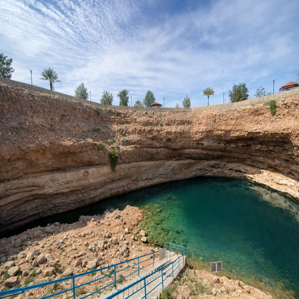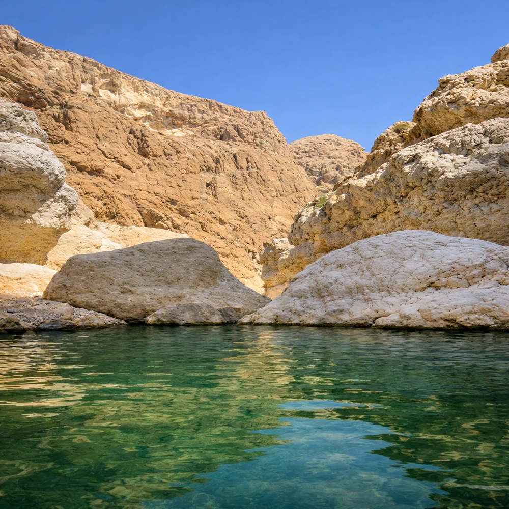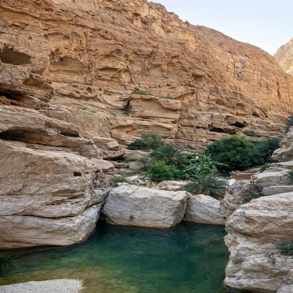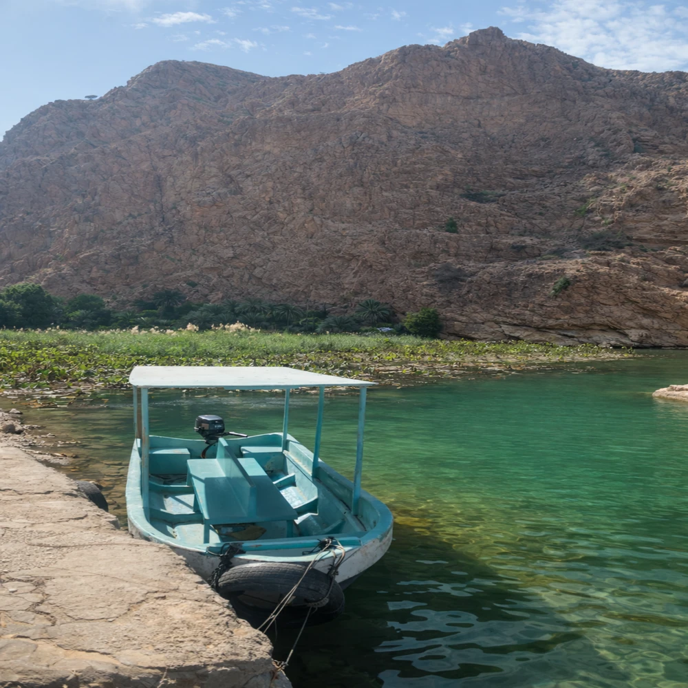 " Сначала мы отправимся в Вади-Шаб — каньон с пресными природными бассейнами, пальмами и скалами цвета охры. Нас ждёт лодочная переправа, прогулка по ущелью и купание. После активностей отдохнём у карстового озера. А в дороге поговорим о современном Омане — без лекций и в свободном формате. "