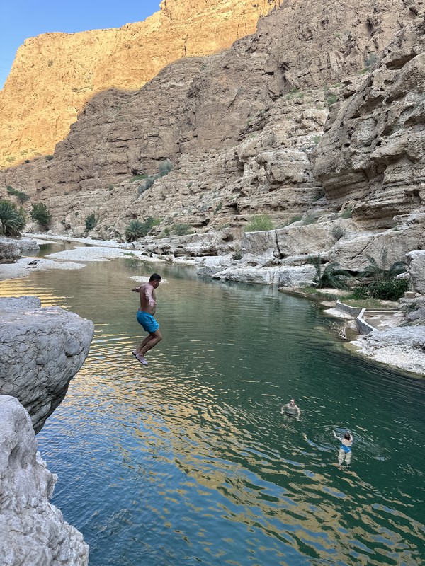 Утром вы отправитесь на автомобиле вдоль оманского побережья в сторону города Сур и уже через полтора-два часа окажетесь в долине. На моторной лодке вы переправитесь через водоем с кристальной бирюзовой водой, после чего будет получасовой хайкинг по живописному ущелью, вдоль крутых скал, фруктовых плантаций и природных бассейнов. На следующей остановке у вас будет две опции — остаться и провести время, наслаждаясь купанием в чистейших водах озера и загорая на теплом солнце посреди оазиса. Или двинуться дальше: преодолев вплавь ручей или пройдя по его дну (что возможно в сухой сезон), вы доберетесь до глубокого бассейна. На его территории, через вход в скалах, вас будут ждать чудесная пещера и красивый водопад, настоящее украшение Вади-Шаба.