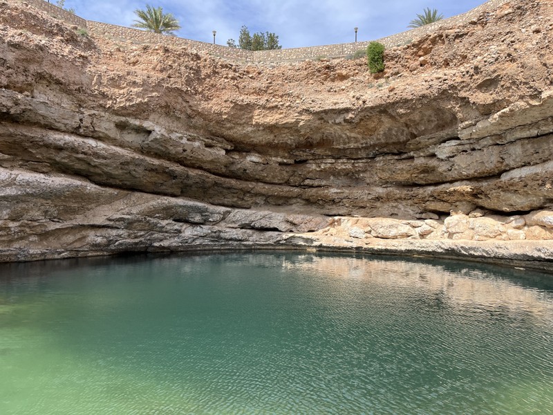 Озеро Бимма. Живописная заполненная водой расщелина в известняке в районе Маската. Для облегчения доступа к этому месту здесь создали парк «Хават Наджм», а также построили лестницу, ведущую к озеру. Спустившись, вы сможете сделать красивые снимки, а при желании — и поплавать.