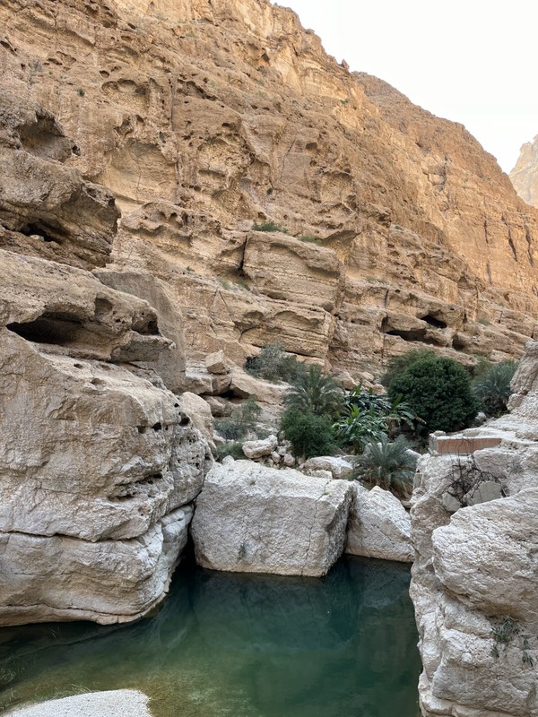 Вади-Шаб. Отправляемся вдоль побережья Омана в направлении города Сур и через 1,5–2 часа прибудем в долину. Переправимся на моторной лодке через водоём с чистой бирюзовой водой. Затем вас ждёт получасовой треккинг по живописному ущелью с видами крутых скал, фруктовых плантаций и естественных бассейнов. Далее есть два варианта: либо остаться и наслаждаться купанием в чистейших водах озера, либо продолжить путь вплавь или пешком по дну ручья (в сухой сезон), чтобы достичь глубокого бассейна и побывать в пещере и на красивом водопаде.
