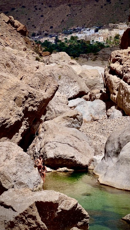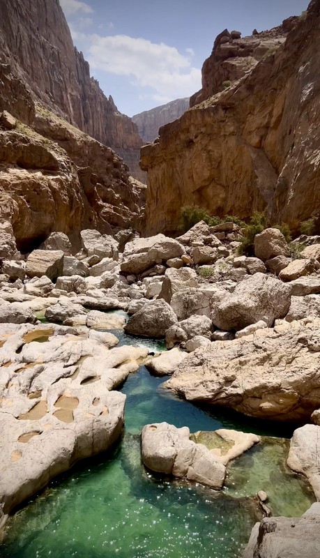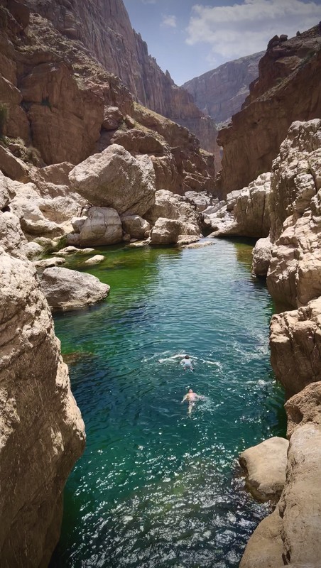 Мы заедем за вами в отель, апартаменты или аэропорт Маската — и отправимся в путь. Первый пункт программы — необычный трейл с походом по дну каньона и купание в красивейших бассейнах Вади Хавир. В бассейн можно будет прыгнуть с 8-метровой высоты. Природные пейзажи и возможность освежиться в оазисе подарят незабываемые впечатления.