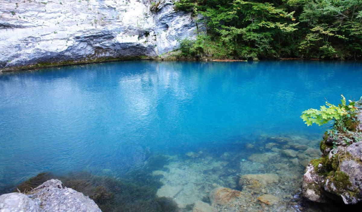 Голубое озеро с кристально чистой водой, температура которой никогда не меняется.