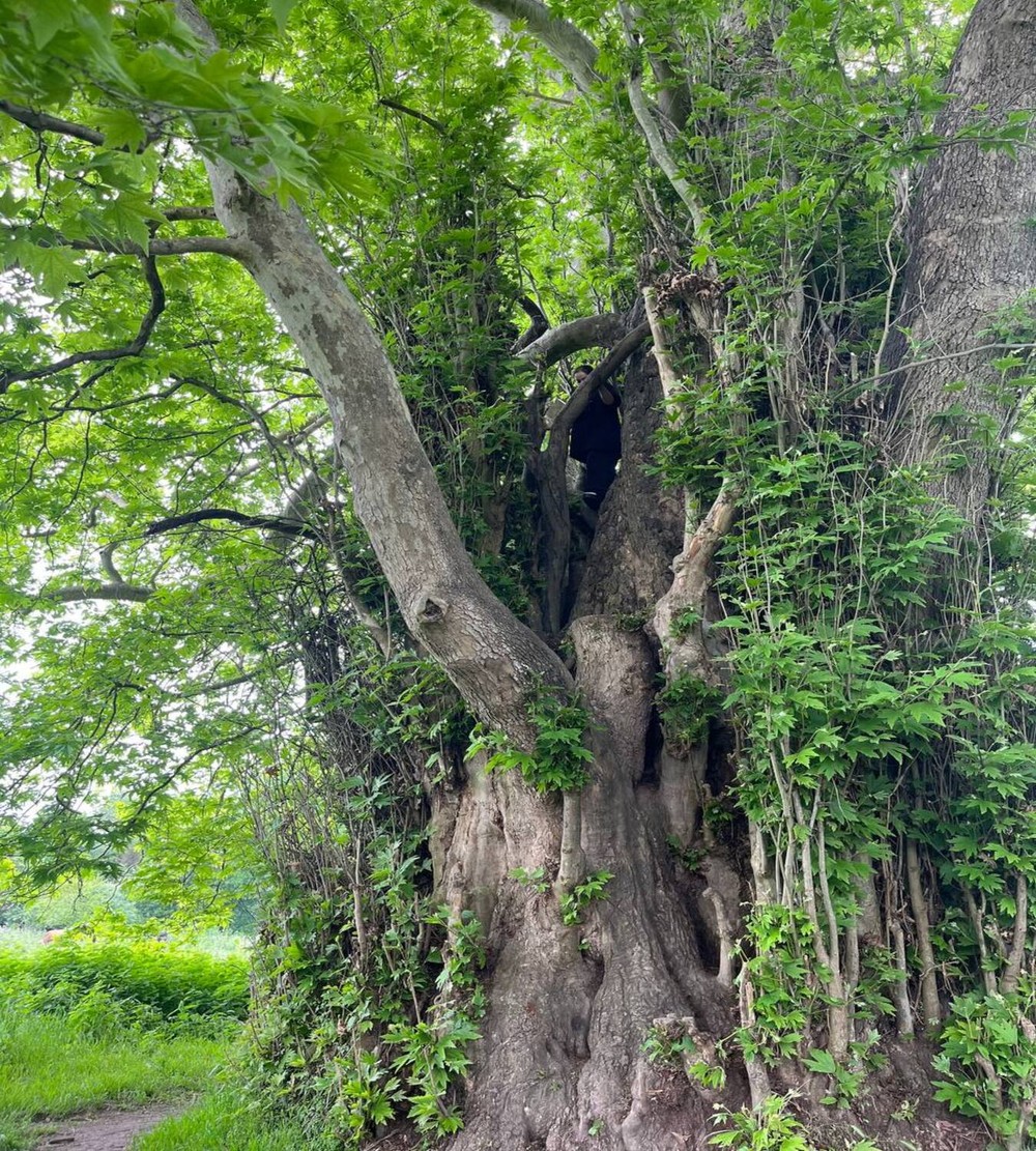 Вы познакомитесь с деревом-старожилом, которое впечатляет своими размерами.
