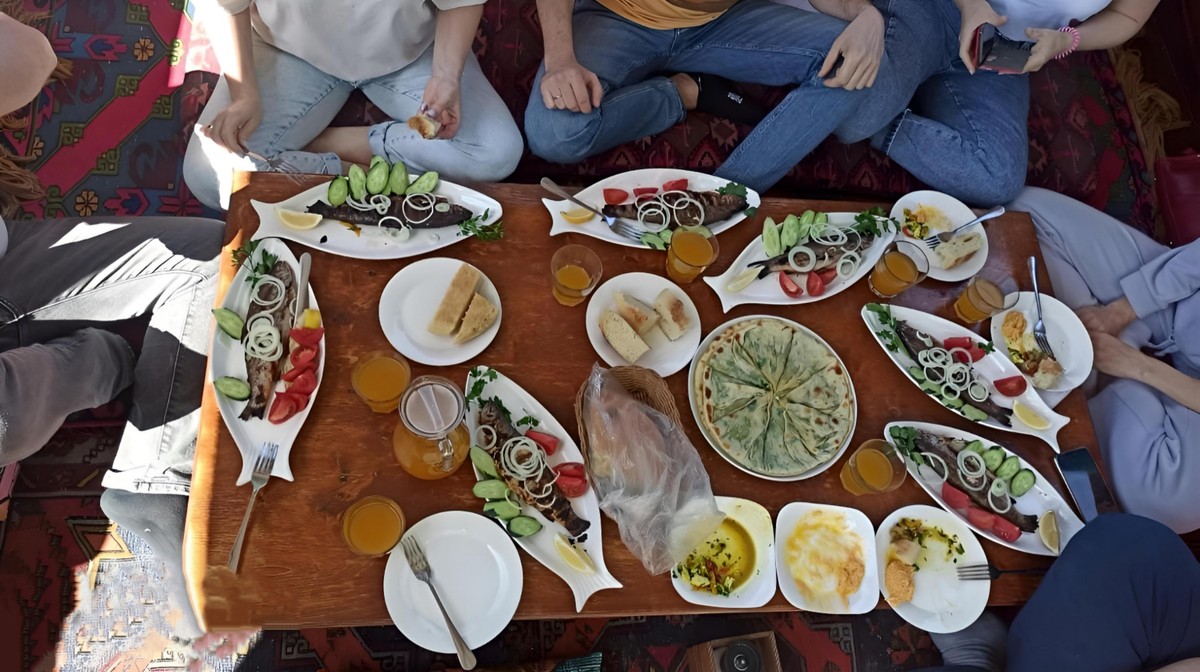 Обед в Персиковом саду. После порции адреналина приятно посидеть в тенистом саду, который манит ароматами зелени, фруктов и свежеприготовленного мяса. Вас порадуют барашек на вертеле, шах-плов, рыба-гриль, разнообразные салаты, чуду и другие блюда дагестанской кухни. Не разочаруют и десерты.