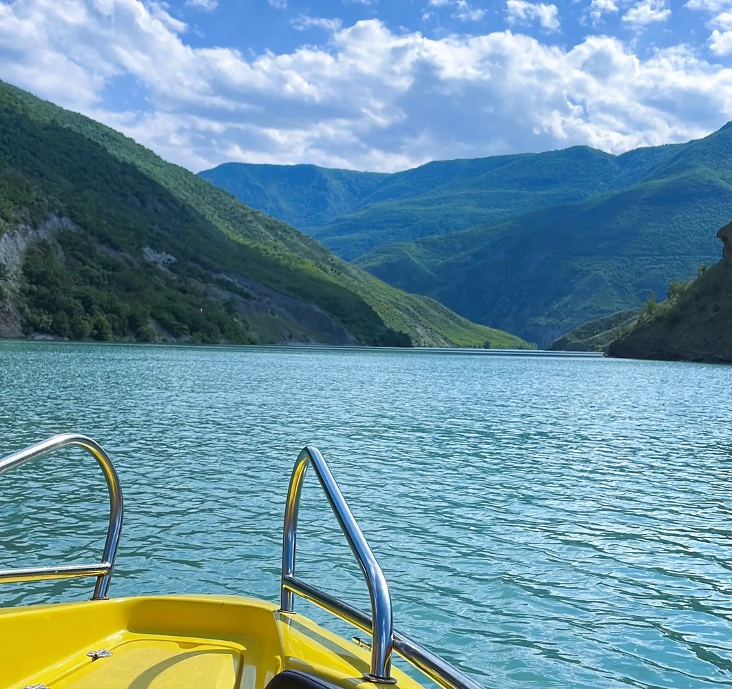 Чиркейское водохранилище — спокойная водная гладь среди горных склонов, идеальное место для отдыха и осмотра окрестностей.
