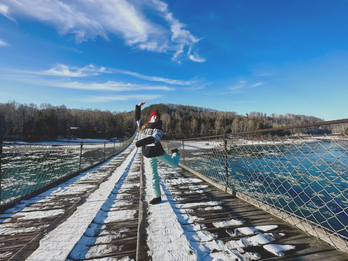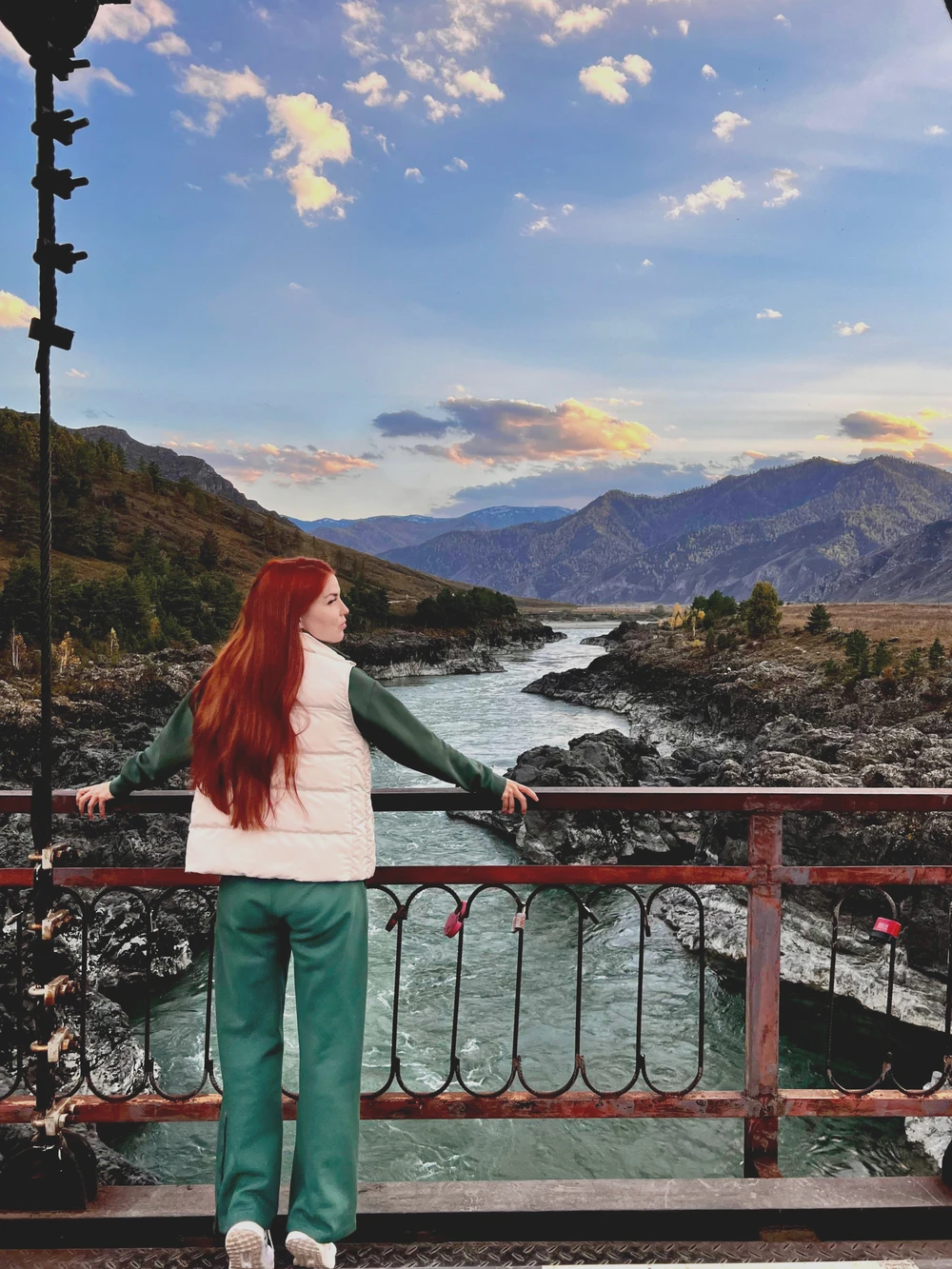 14:00 — Ороктойский мост. Самый известный и один из самых фотогеничных мостов Горного Алтая, перекинутый через бирюзовые воды Катуни