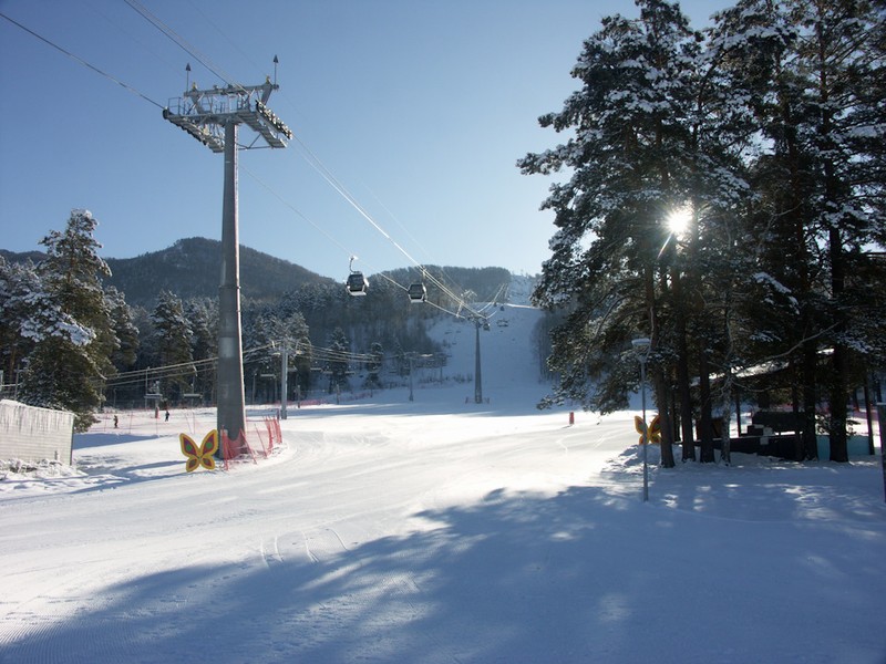 Горнолыжный курорт «Манжерок» в окрестностях Алтая. На оборудованных трассах вы покатаетесь на лыжах или сноуборде (я могу дать вам урок горнолыжной езды), а если захотите, даже встанете на коньки! Подниметесь по канатной дороге в закрытых теплых кабинках и устроите прогулку среди горных вершин и сосен.