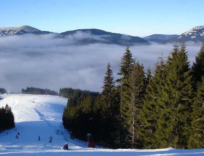 Горнолыжный комплекс «Телецкий», который расположился на горе Кокуя. Путь сюда неблизкий, поэтому к Телецкому озеру лучше ехать на 2 дня. Будем любоваться красотой кедровой тайги, рассматривать тропки животных, забираться на подъемниках выше гор и облаков. И, конечно, кататься на горных лыжах по трассе, которая лентой петляет среди высоченных елей.