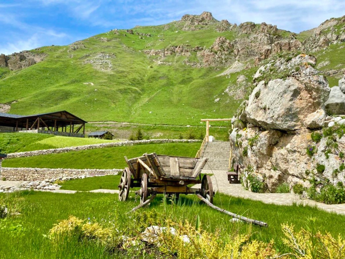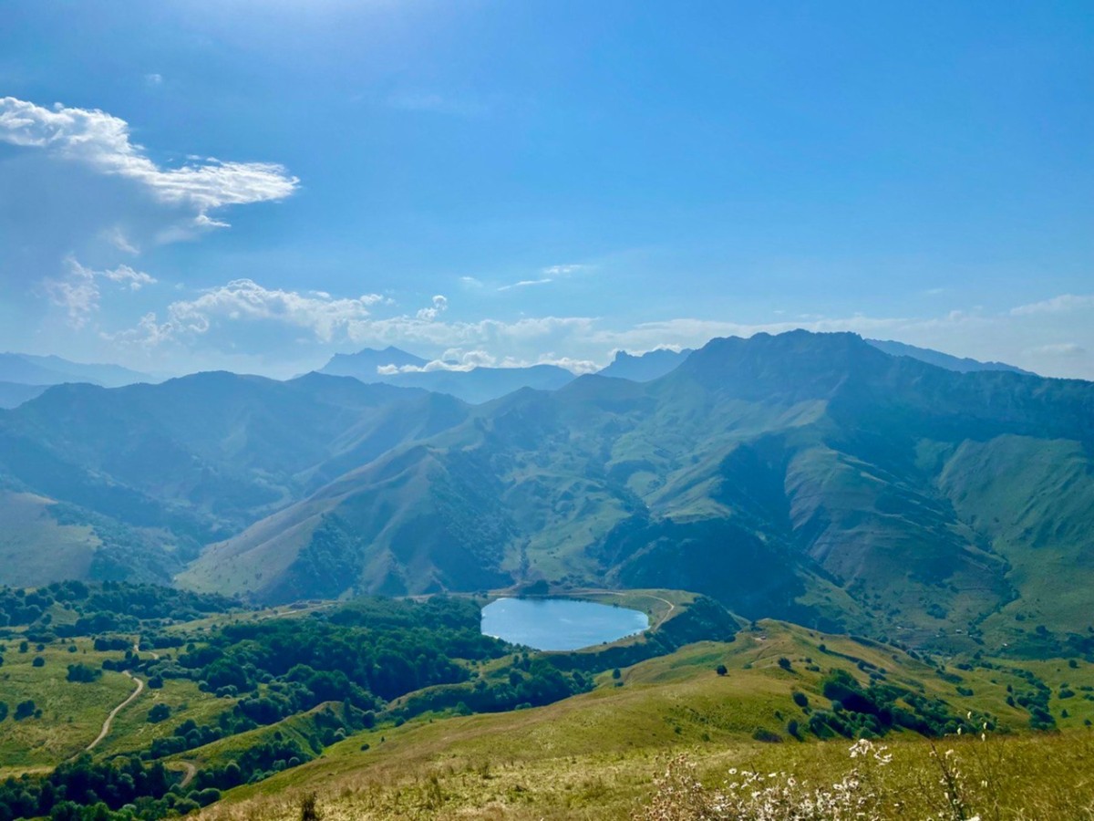 По живописному серпантину мы поднимемся к главной точке маршрута — Галанчожскому озеру, расположенному на высоте около 2000 метров. Споры о его происхождении не утихают до сих пор, а с высоты оно кажется нарисованным — но художником здесь была сама природа.