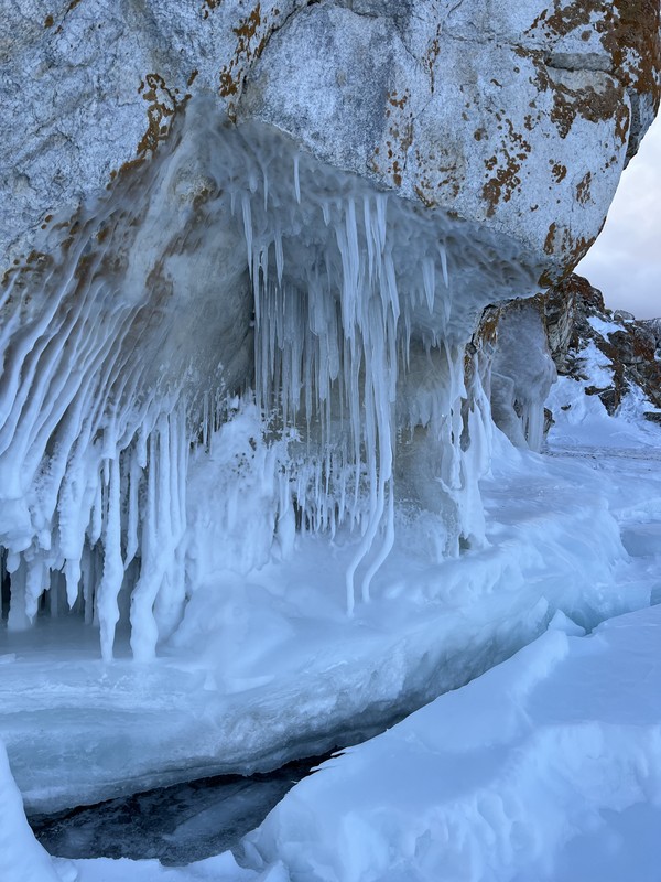 Западный берег Байкала, в заливах которого уже сформировался ледяной покров от 10 до 40 см — то есть безопасно передвигаться пешком. Или, если захотите, на коньках (возьмите их с собой)