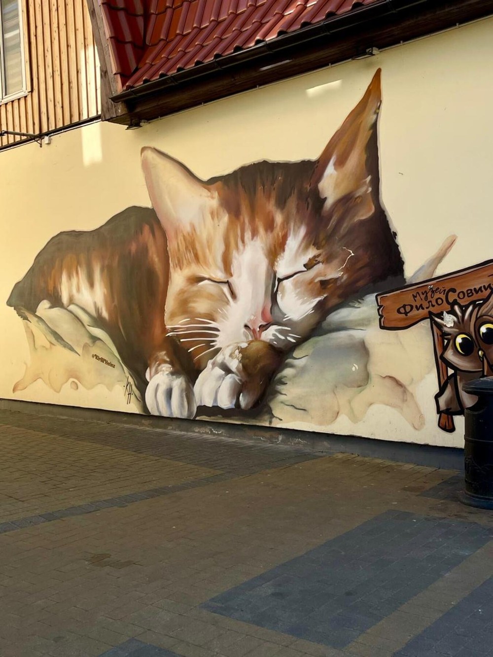 - Уличные арт-объекты и кошачьи граффити — символы современного Зеленоградска