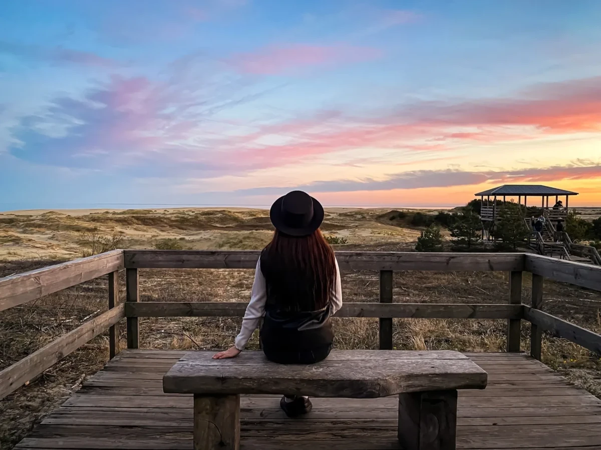 Одно из самых узких мест Куршской косы, где мы сможем рассчитать расстояние от моря до залива, насладится Балтийским морем и разгадать, почему местный маяк называют «торшер любви».
