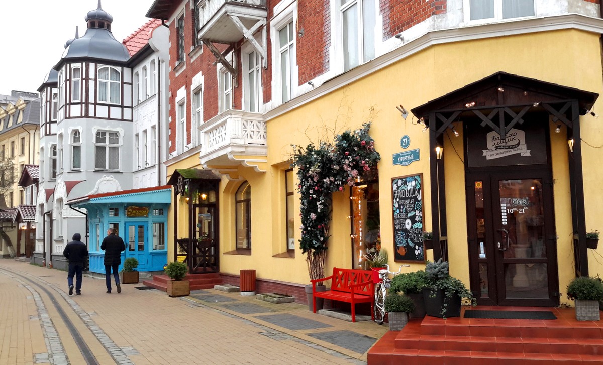 - На торговой улице Кёнигсбергерштрассе осмотрим сохранившиеся виллы, отели, почтамт, булочную и даже «Дом звездного неба». Как и прежде, здесь много лавочек, магазинов, сувениров. Ярко и шумно в праздники, туманно и безлюдно по утрам, с ноткой грусти в дождь и очень музыкально знойными летними вечерами!