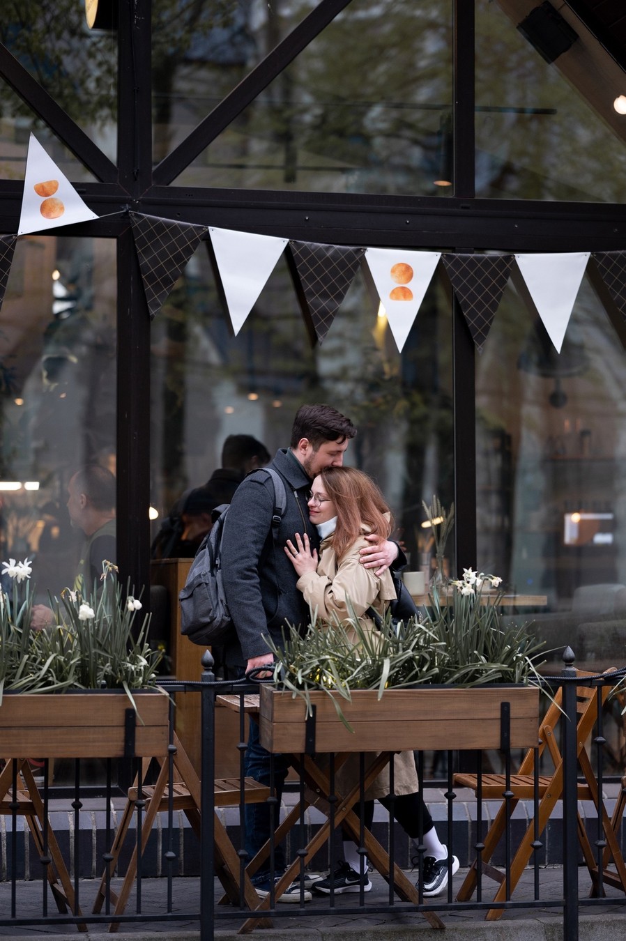 Это репортажная съёмка. Вы наслаждаетесь красотой вокруг, а я ловлю ваши эмоции, выбираю удачные виды и фиксирую всё на камеру. По пути можем забегать в уютные кафе. Покажу стильные и фотогеничные заведения. Я не всегда иду рядом с вами, чаще всего наблюдаю со стороны и направляю для самых удачных ракурсов.
