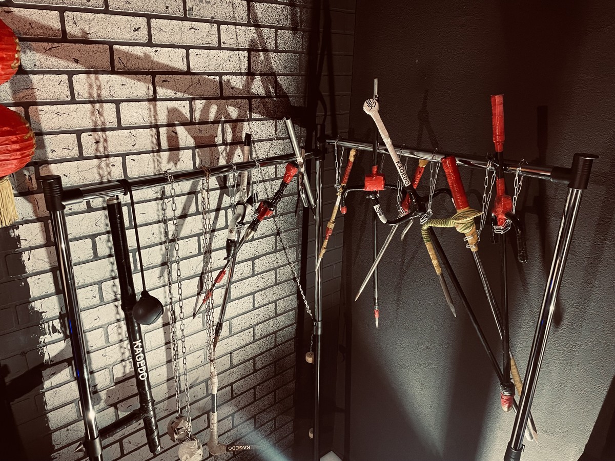 Вы увидите кусаригами, луки, катаны, сюрикэны, боевые веера и многое другое. Все экспонаты можно трогать, брать в руки и фотографировать, а из лука — даже пострелять!