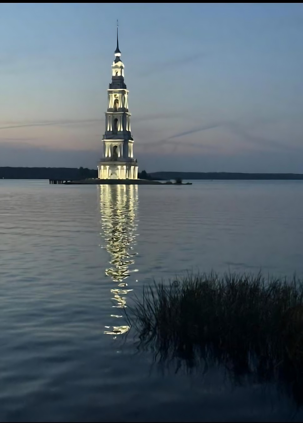 - Выясните, почему колокольня осталась стоять прямо посреди Волги